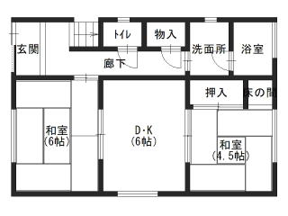 | 間取り | 4DK 1階:和6,DK6,和4.5、洗面脱衣、バス、トイレ 2階:和6×2、ベランダ |