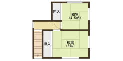| 間取り | 4DK 1階:DK6、和6、和4.5、浴室、トイレ 2階:和6、和4.5 |