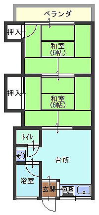 | 間取り | 2DK 和6・和6・DK6・バス・トイレ | |