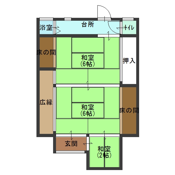 | 間取り | 和6・和6・和2・台所・バス・トイレ | |